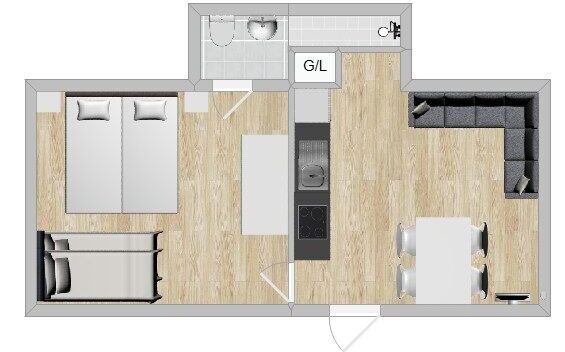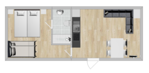 - 1 dubbelsäng och 1 våningssäng i ett sovrum